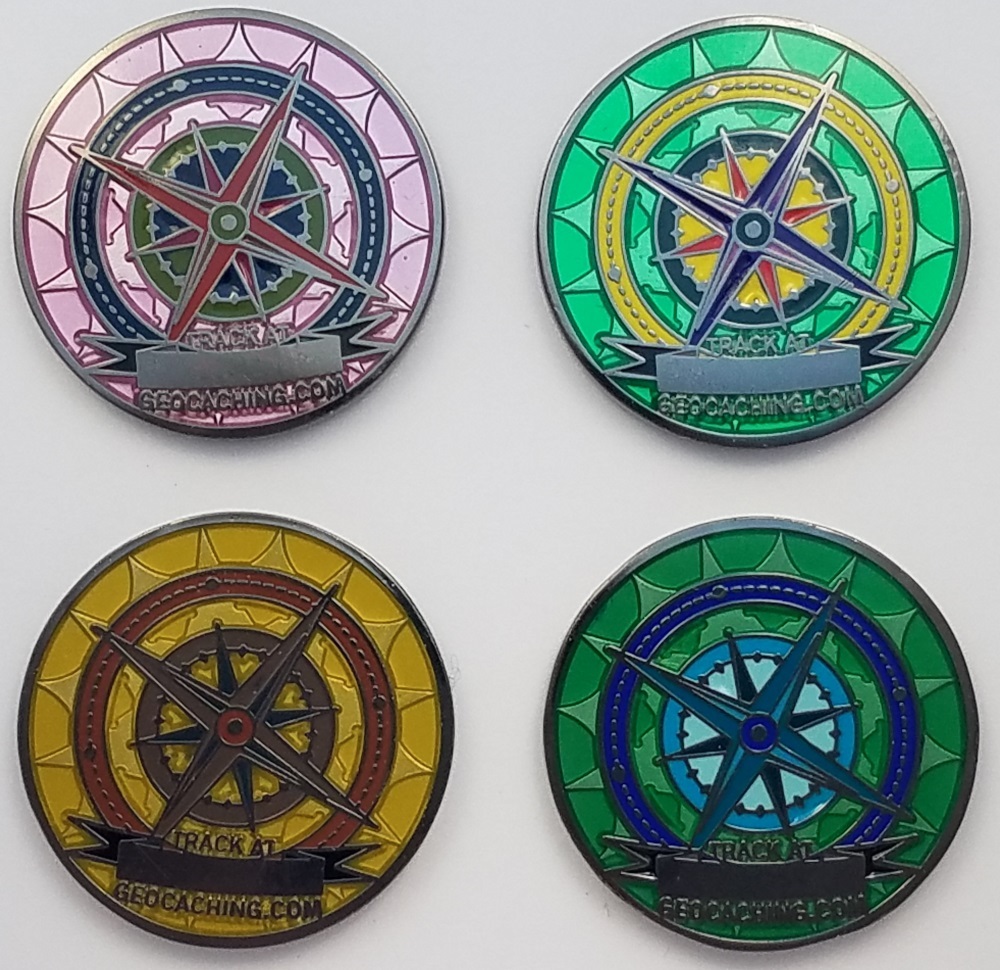 This set of four micro coins feature fun representations of fire, air, earth and water on the face with a colorful compass rose on the flip side.